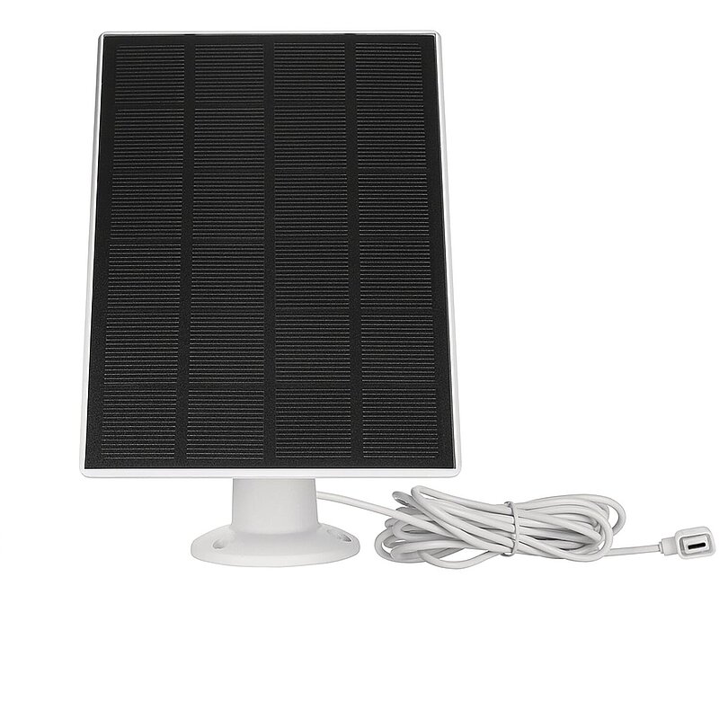 Das Solarpanel verlängert die Akku-Laufzeit der Kamera erheblich, abhängig von den vor Ort herrschenden Bedingungen. Ein manuelles Nachladen entfällt, solange das Solarpanel genügend Sonneneinstrahlung erhält, die Oberfläche sauber ist und die Temperatur im optimalen Bereich liegt. Das Set umfasst eine Halterung mit Kugelkopf und ein 3-Meter-Kabel (USB-C-Stecker) zur idealen Ausrichtung des Panels zur Sonne. Das Solarpanel ist wetterfest (IP65).