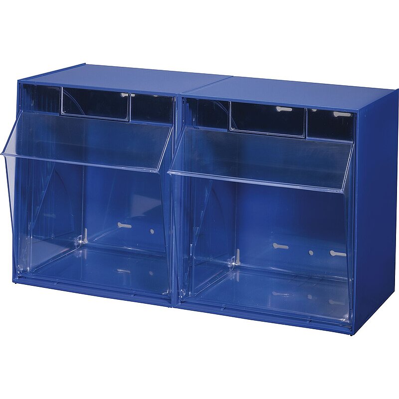 Kunststoff-Kleinteilemagazine mit herausnehmbaren Klappschütten