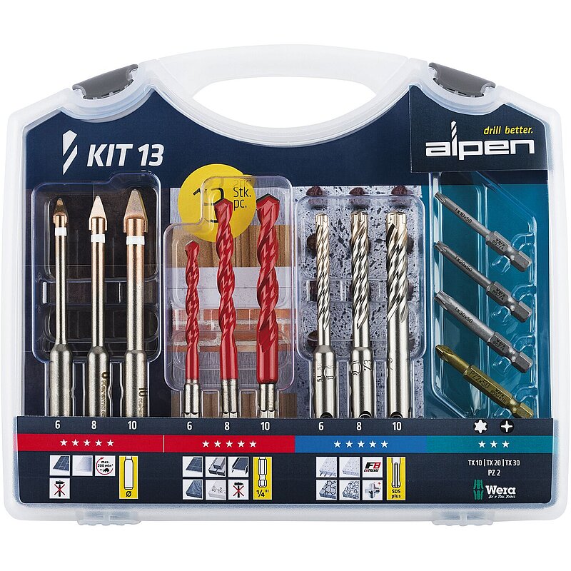 ALPEN Bohr-Schraubset KIT 13 Inhalt 9 Bohrer, 4 Bits