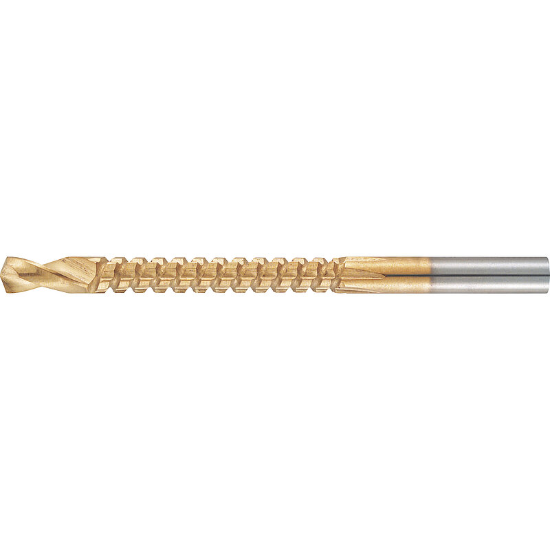 Universelles Werkzeug zum Bohren und Fräsen in Blech, Holz, Kunststoff und dünnwandigen Materialien. Kurzer Spiralbohrerteil, übergehend in Frässchneider mit Spanbrechern.