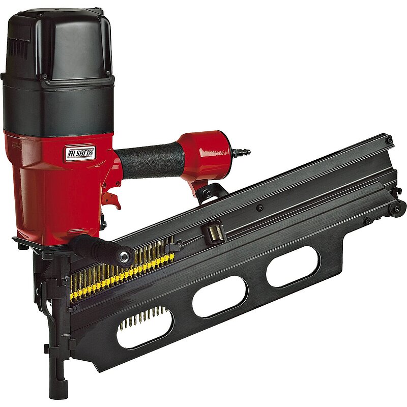 Extrem leistungsstark und robust für industriellen Einsatz, Einzelauslösung mit Sicherungsfolge, höhenverstellbarer Anschlag, integrierte Schalldämpfung, Leerschuss- Sperre. Ideal für Zimmereien, Dachschalungen, Fertighausbau, Palettenbau, Verschläge, Holzrahmenbau und Schwerstverpackungen.