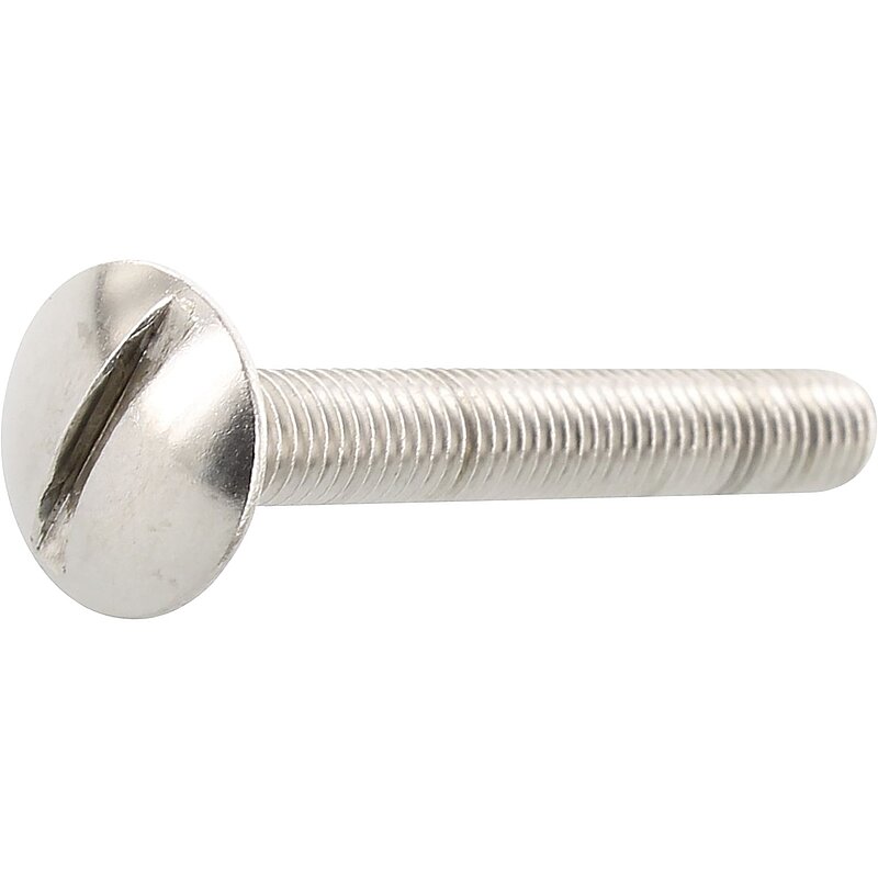 Flachrundschrauben mit großem Kopf und Schlitz, ideal für Verschraubungen im Maschinenbereich.