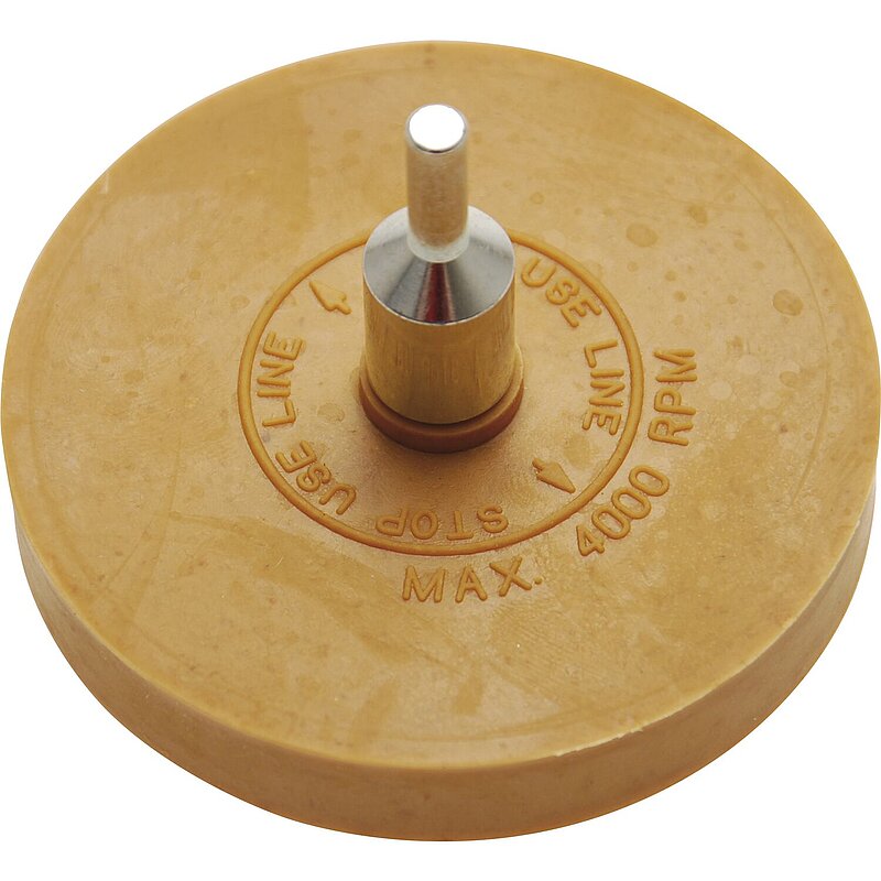Zum Entfernen von Aufklebern, Kleb- und Farbresten auf lackierten und metallischen Oberflächen. Die neutralfarbige Gummi-Radierscheibe verhindert ein Verschmieren auf der Oberfläche.
