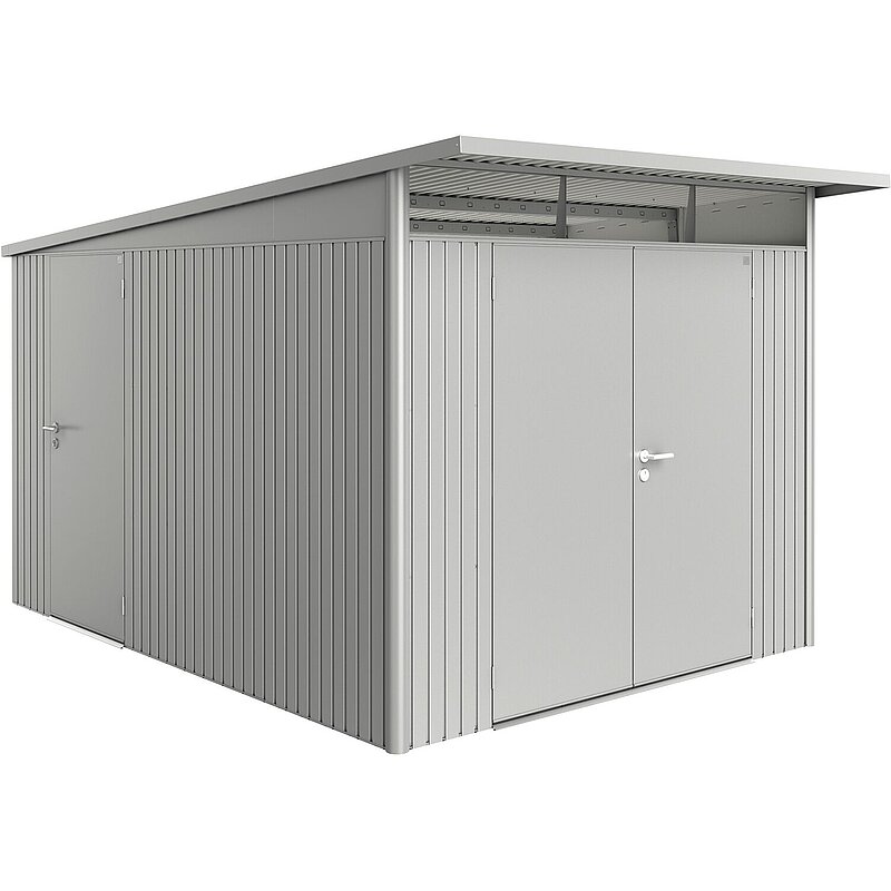 Damit Ihr Gerätehaus von zwei Seiten begehbar wird, können Sie eine Zusatztüre (mit Edelstahl-Drückergarnitur) in einer Seitenwand einbauen. Im Lieferumfang der Zusatztür sind eine 3-fach Verriegelung, Gasdruckfeder, Scharniere, 2 Werkzeughalter sowie die passenden seitlichen Türanschlagbleche enthalten. Der Türanschlag ist nur rechts möglich.