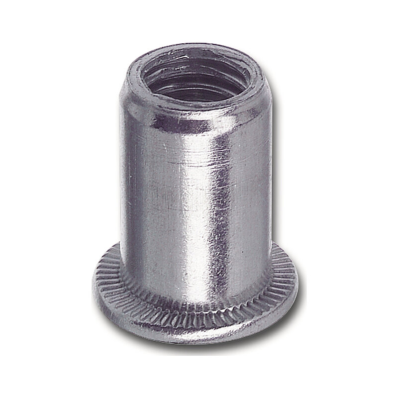 Blindnietmutter Flachkopf Unterkopfverzahnt Rundschaft offen M10 Stahl verzinkt