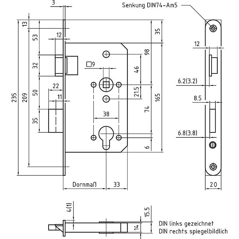 Einstemmschloss BMH 1000 Rundzylinder mit Verbundfalle und Wechsel (nach DIN)