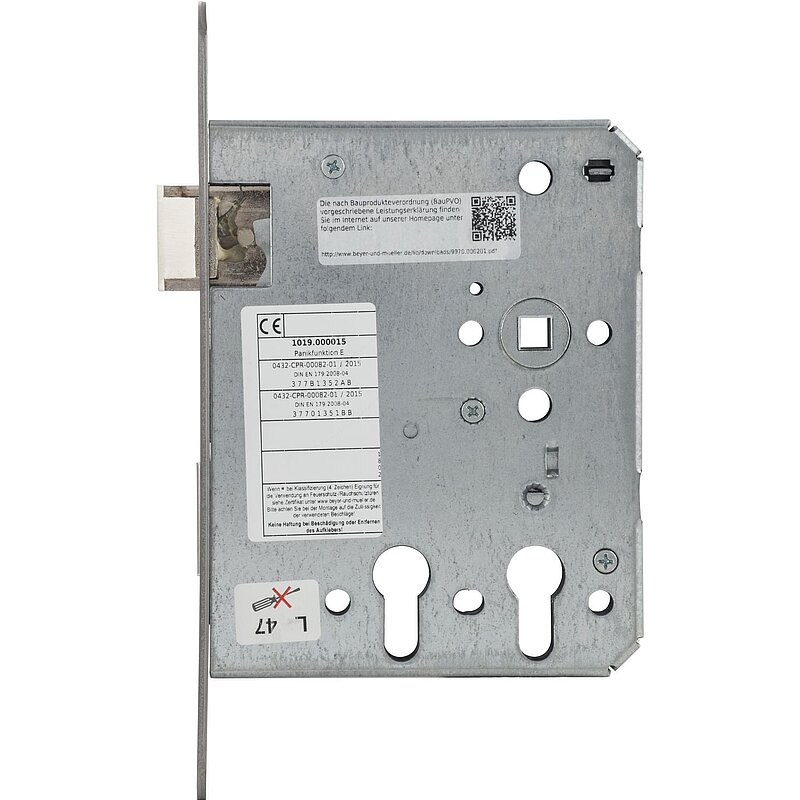 BMH Fluchttürschloss 1019 PZW für 2 Profilzylinder, links, DM 60/100, Edelstahl