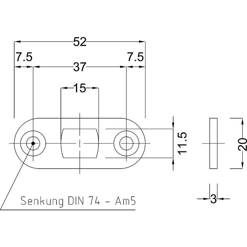 52 x 20 x 3 mm rund