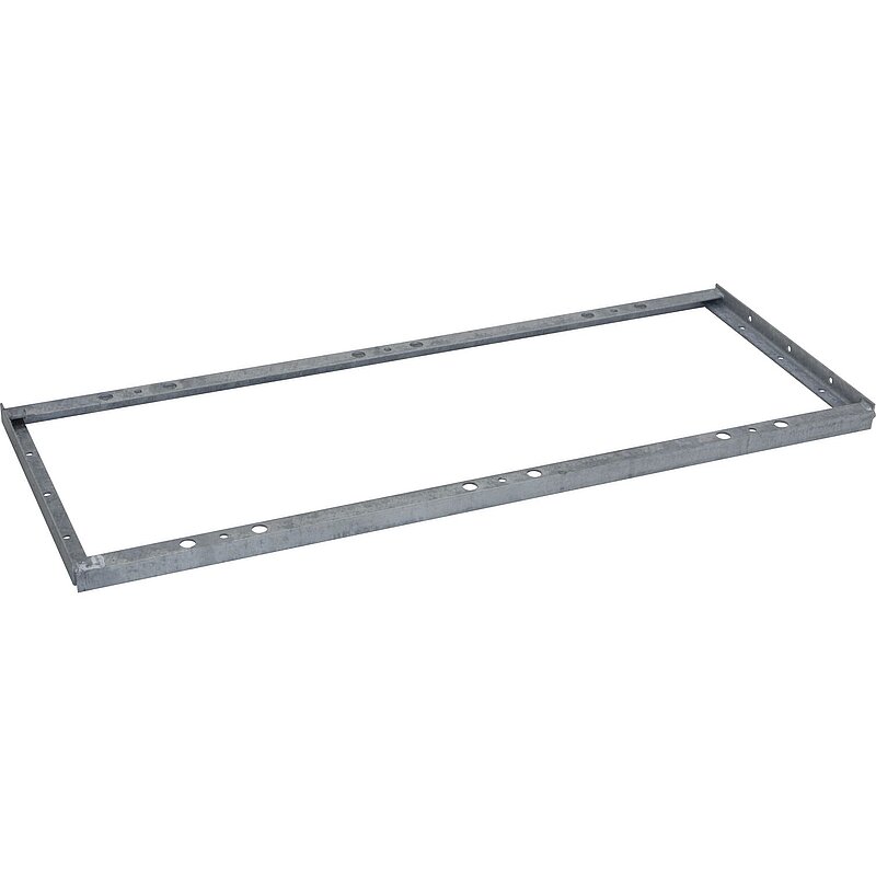 Erweiterbares Ständersystem - die Bodenrahmen sind für die Reihenverbindung vorbereitet. Seitliche Verbindungs-Bohrlöcher (ø 9,6 mm). Bügel beidseitig montierbar.