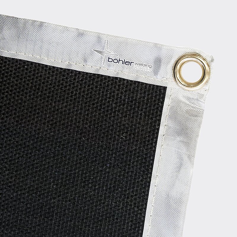 Schweißerschutzdecke für Schweiß- und Schleifarbeiten mit leichter Beanspruchung. Temperaturresistent, mit Ösen an allen vier Seiten.