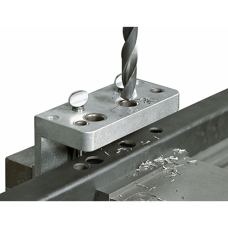 Bohrschablone zur Vorbereitung Ihrer Tor- und Pfostenprofile für Drehtorschlösser und dazupassende Anschläge. Die Schablone ist einstellbar für Profile 40-50-60 mm.