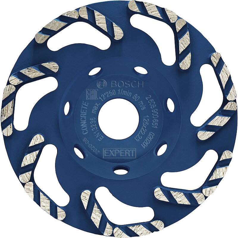 Hochgeschwindigkeitsschleife für die Bearbeitung von Beton. Ausgestattet mit der Bosch Diamond Technology. Effizienter Staubauswurf durch große Staubschlitze.