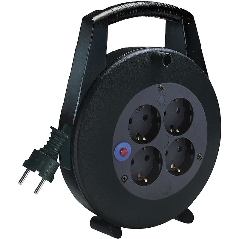Schlagfestes Gehäuse aus Spezial-Kunststoff, ergonomisch geformter Tragegriff, gute Standfestigkeit durch stabilen Doppelfuß, 4 Schutzkontakt-Steckdosen 230V, mit Überhitzungsschutz.