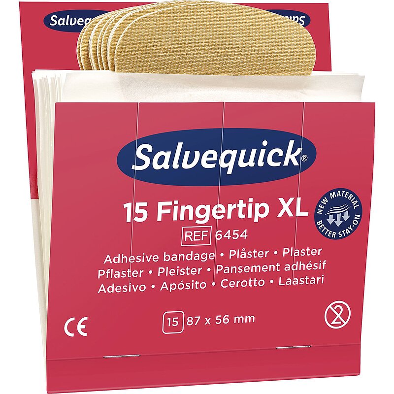 Salvequick Fingerkuppenpflaster, extra groß, sind flexible Textilpflaster für Fingerverletzungen. Auf Allergien getestet. Leicht aufzukleben, flexibel und praktisch.