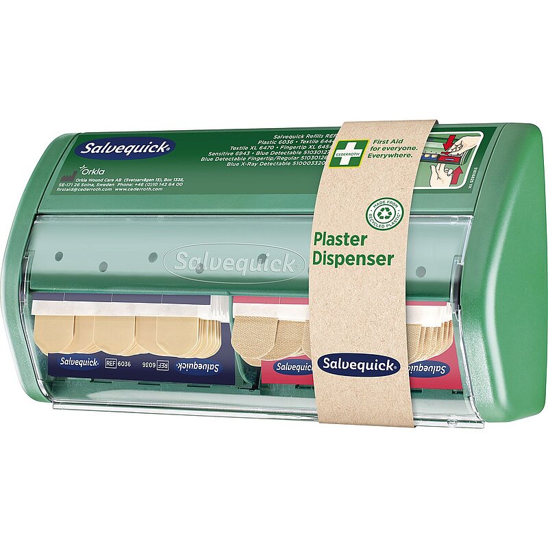Salvequick Pflasterspender ist qualitativ hochwertig und leicht anzuwenden. Zieht man das Pflaster aus dem Spender, wird ein Schutzpapier automatisch gezogen und man kann das Pflaster mit einer Hand anbringen. Der Spender wird schnell und einfach mit einem Spezialschlüssel nachgefüllt. Bei der Nachfüllung passen verschiedene Refills. Ein transparenter Deckel schützt vor Staub.