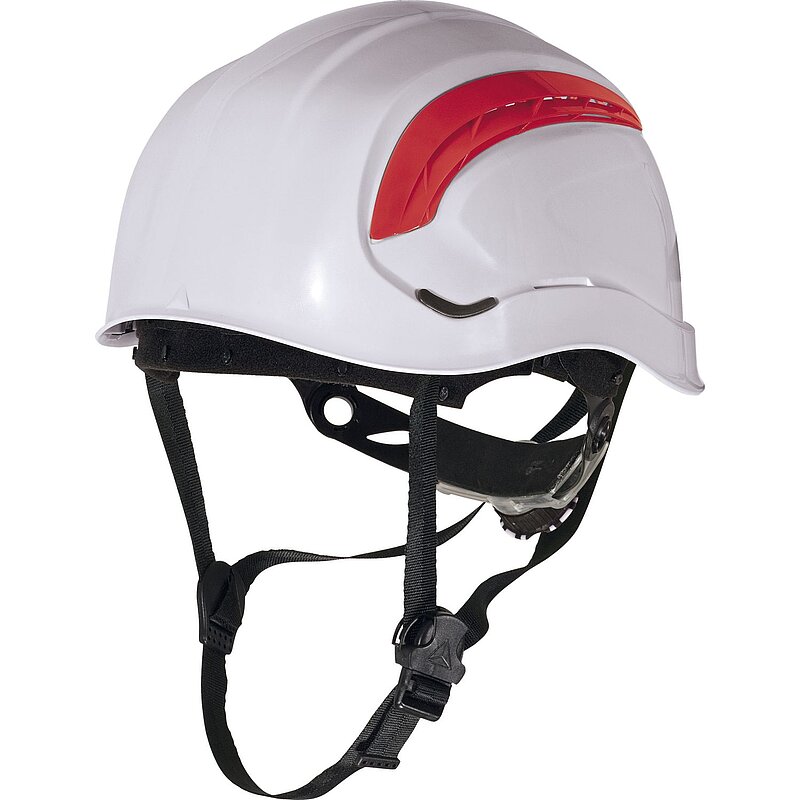 Nach EN 397, belüfteter Bauhelm aus ABS im Bergsteigerhelm-Stil, ohne Schirm für verbesserte vertikale Sicht, innovative Textil-Innenausstattung für besonderen Tragekomfort, anpassbares ROTOR® System zum Festziehen von Kopfumfang 53 bis 63 cm, abnehmbarer Kinnriemen mit 3 Befestigungspunkten.