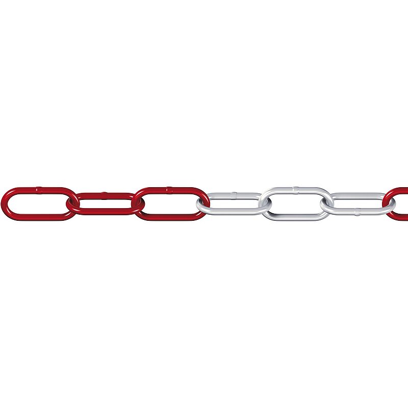 Absperrkette DIN 5685-1 aus Stahl verzinkt und lackiert, langgliedrig, ungeprüft.