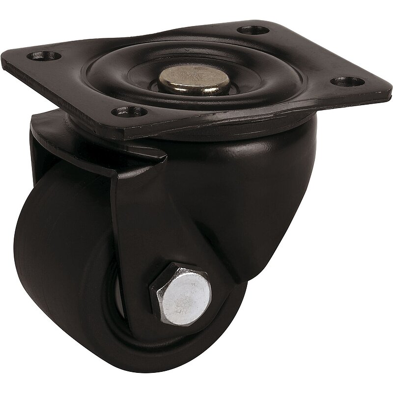 Schwerlast-Lenkrolle mit geringer Bauhöhe und Kunststoffrad, Gehäuse mit Platte, verzinkt schwarz