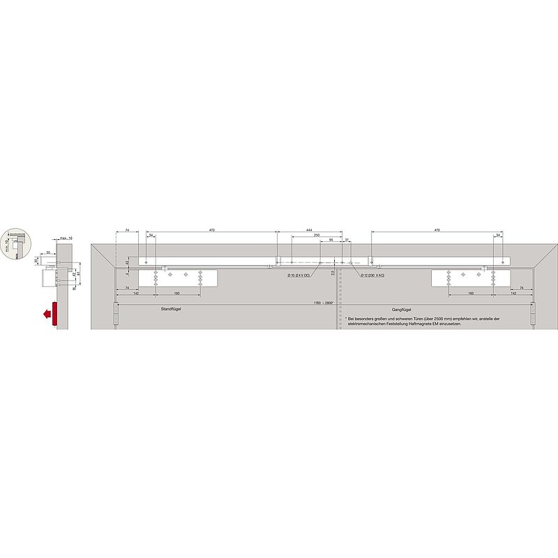 Ausführung:mit Schließfolgeregelung, Rauchmeldezentrale und elektromech. Feststellung im Standflügel