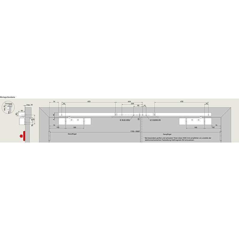 Ausführung:mit Schließfolgeregelung und elektromech. Feststellung beider Flügel und integrierter Rauchschaltzentrale