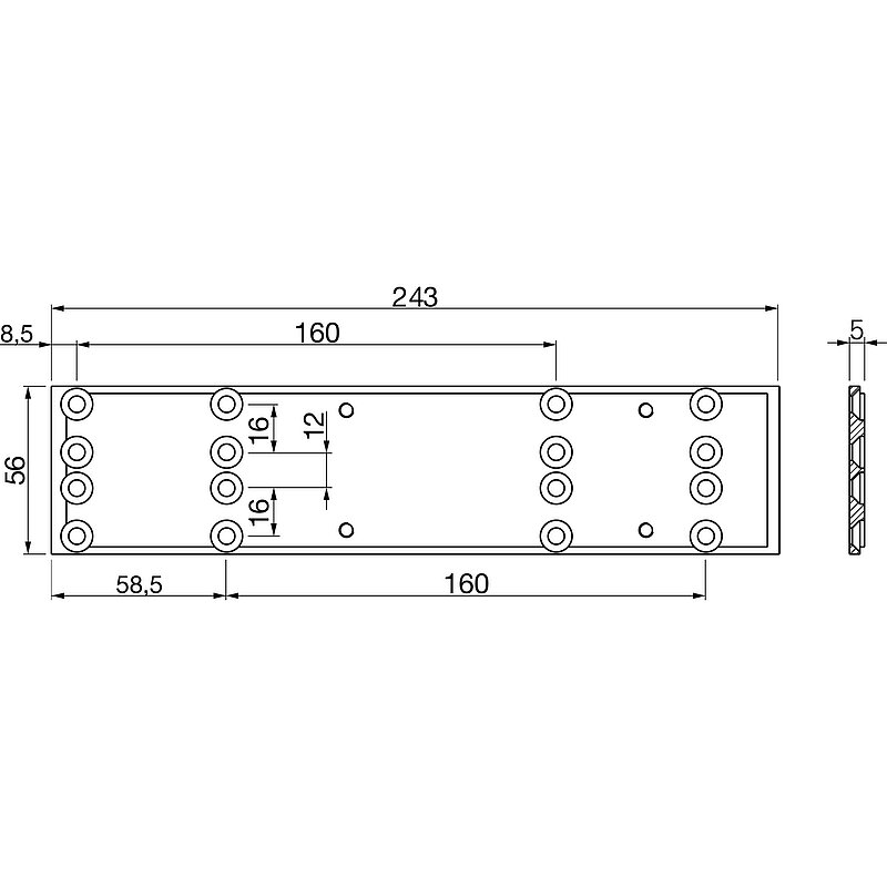 ECO Montageplatte für Newton TS 20, 243 x 56 x 5 mm, silber