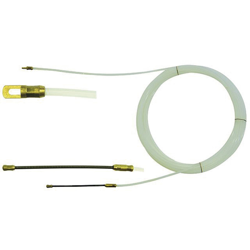 Nylon-Einziehband mit Suchfeder und Öse, zug-, dreh- und abriebfest, elektrisch nicht leitend, sehr gute Gleitfähigkeit, geringes Gewicht.
