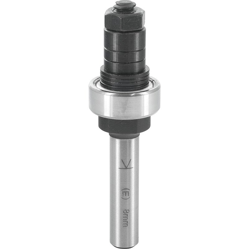 Aufnahmedorn mit Kugellager zur Aufnahme von Scheibennutmessern. Jeder Aufnahmedorn wird mit geschliffenen Präzisions-Zwischenringen geliefert, sodass eine genaue Aufnahme des Scheibennutmessers und eine exakte Nutbreite gewährleistet ist.