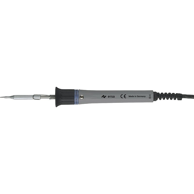Kurzer Abstand zwischen Lötspitze und Griffvorderteil. Griff bleibt beim Löten vergleichsweise kühl. Eignet sich daher für feinste Lötstellen ebenso, wie für mittelgroße Lötungen, wie z. B. an Verteilerleisten. Die innenbeheizten Lötspitzen sorgen zusammen mit den langlebigen und industrieerprobten PTC-Heizelementen bei der 15 W Ausführung für hohen Wirkungsgrad und schnellen Wärmenachschub. Ausgestattet mit einer 1,1 mm bleistiftspitzen ERSADUR-Dauerlötspitze (0162BD) und einer Ablage (0A18).