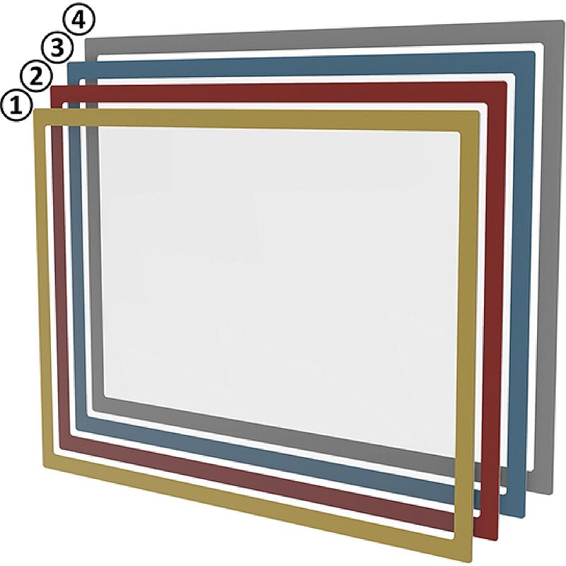 Zur variablen und strukturierten Informationsbereitstellung durch sicheren Halt auf metallischen Oberflächen z.B. von Visual Boards / Whiteboards. Farbliche Kennzeichnung für verschiedene Kennzahlen oder Themenblöcke, Rahmenfarbe dauerhaft zwischen Außenfolie und umlaufenden Magnetrand eingeschlossen. Schützt Dokumente vor Verschmutzung, Belege einfach auswechselbar. Im Hochformat und im Querformat einsetzbar, durch 4 magnetische Seiten leicht neu zu positionieren.