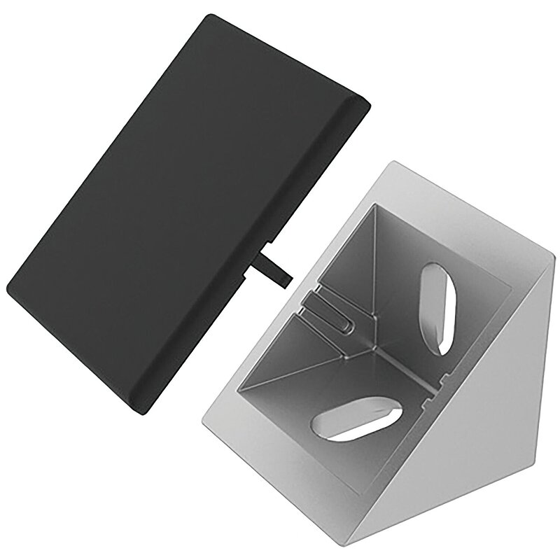 Bestehend aus: 1 Zinkwinkel, 1 Abdeckkappe, 4 Nutenstein Nut 8 - M8, 4 Schrauben ISO 7380 - M8 x 18, 4 Scheiben.