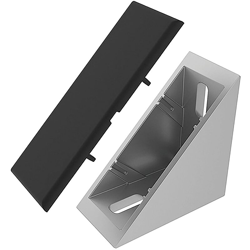 Bestehend aus: 1 Zinkwinkel, 1 Abdeckkappe, 4 Nutenstein Nut 8 - M8, 4 Schrauben ISO 7380 - M8 x 18, 4 Scheiben.