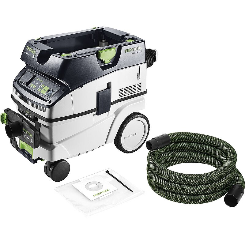Effektivere AUTOCLEAN Hauptfilterabreinigung. Das sorgt für konstant hohe Saugleistung, längere Arbeitsintervalle und eine längere Filterlebensdauer bei geringerem Wartungsaufwand. Zulassung für Staubklasse L. Mit Touch-Bedienung zur intuitiven Steuerung deines Saugers. Mit fest installierter Bluetooth® Schnittstelle, um den Sauger per Festool Akku-Werkzeug oder optionaler Fernbedienung automatisch zu starten. Vernetzt ist der Sauger auch mit der Festool App, hier lassen sich z.B. Abreinigungsintervalle einstellen. Der glatte, antistatische Saugschlauch kann praktisch im integrierten Schlauchdepot verstaut werden.