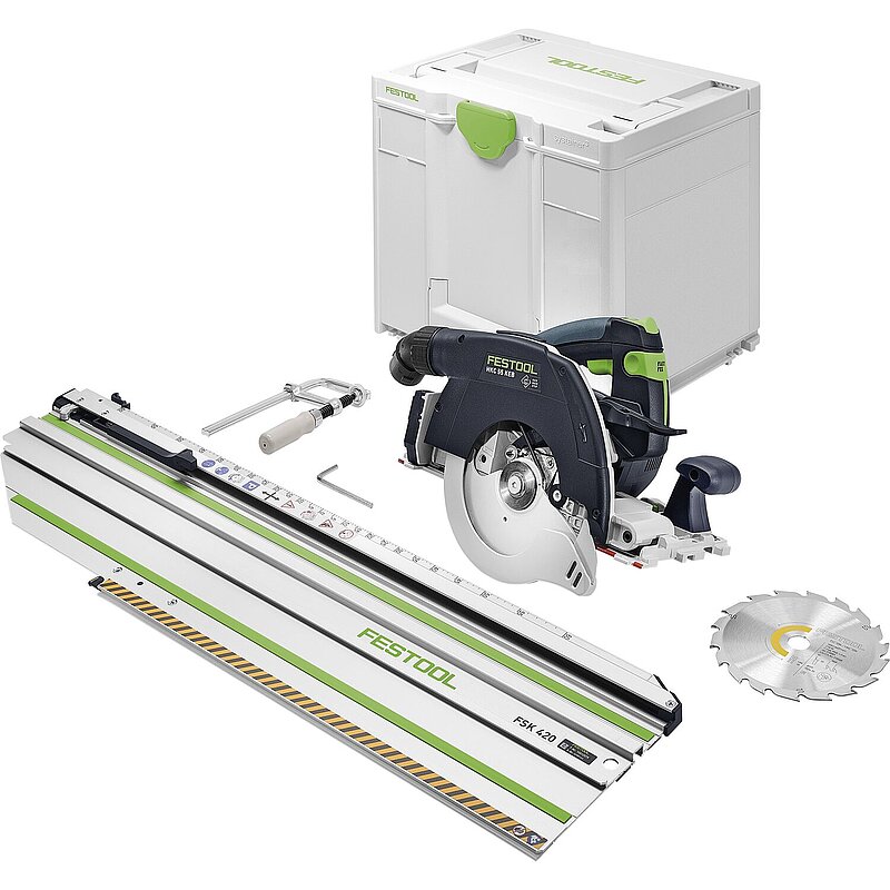Lieferung inkl. Kreissägeblatt WOOD STANDARD HW 160 W18, Kappschiene FSK 420, Innensechskantschlüssel, im Systainer SYS3 M 337.