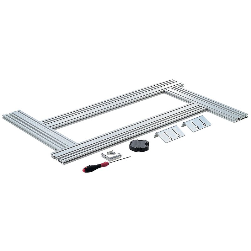 Geeignet für alle Oberfräsen mit Kopierringaufnahme, für rechteckige (600 x 300 mm) oder runde ( Ø 1200 mm) Ausfräsungen.