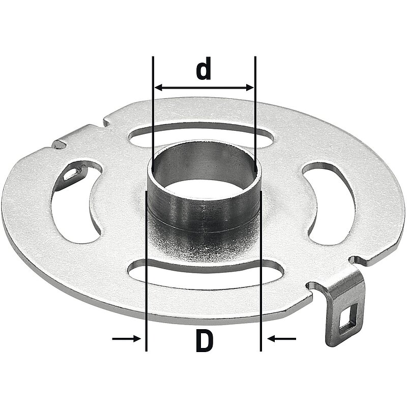 Kopierring zum Abtasten von Frässchablonen, werkzeuglos in die Oberfräse einsetzbar. Passend zu OF 1400 und VS 600.