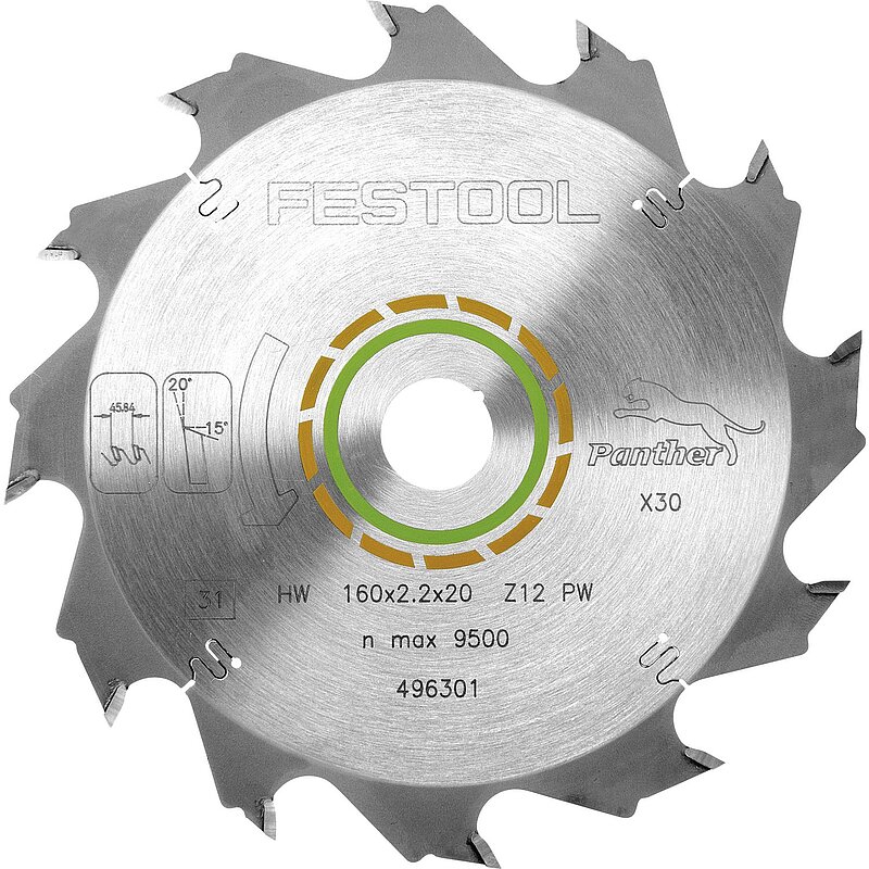 FESTOOL Panther Kreissägeblatt HW ø 160 x 20 x 2,2 Zähne 12 Wechselzahn Panther