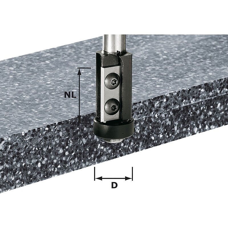 Wendeplatten-Bündigfräser für konstante Frästiefen - das kunststoffummantelte Kugellager sorgt für streifenfreie Ergebnisse.