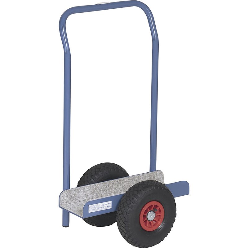 Plattenroller in Stahlblech-Konstruktion, pulverbeschichtet. Innenflächen mit Filzbelag. Mit Anlage- und Schiebebügel.