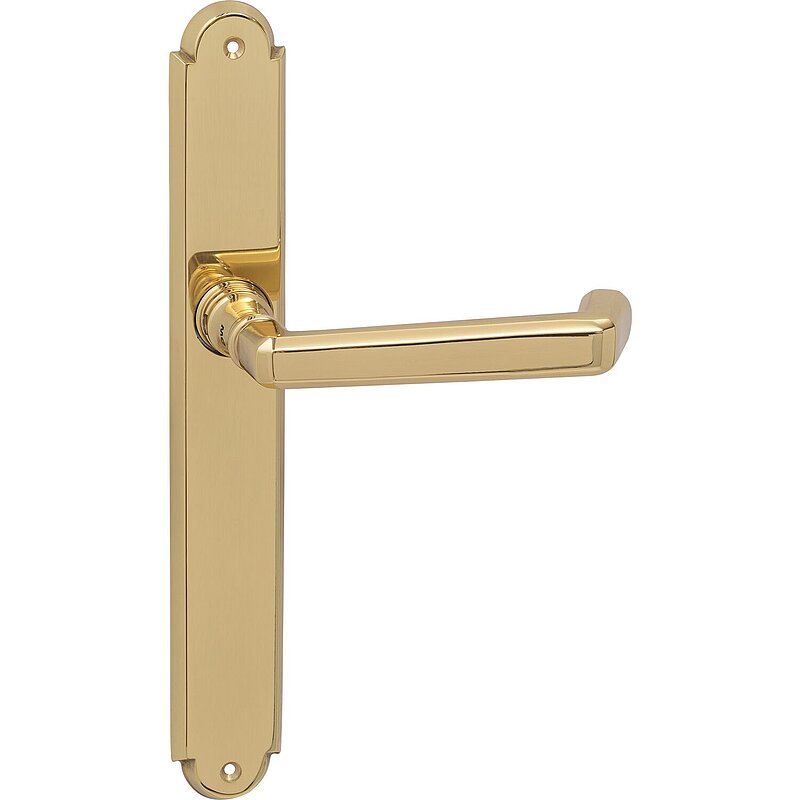 Feuerschutz Drückerlangschild Alt Wien für Standflügel, Messing poliert