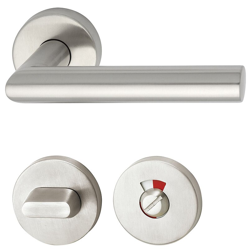 FH-Drückergarnitur GEHRUNG - auf Rosette WC, 38 - 45, Edelstahl matt