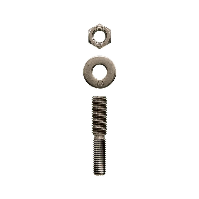Enthalten sind jeweils 10x Gewindereduzierstift M12/M10 A4, Unterlegscheibe 10,5 x 25 x 3 A4 und Sechskantmutter M10 A4 SW17.