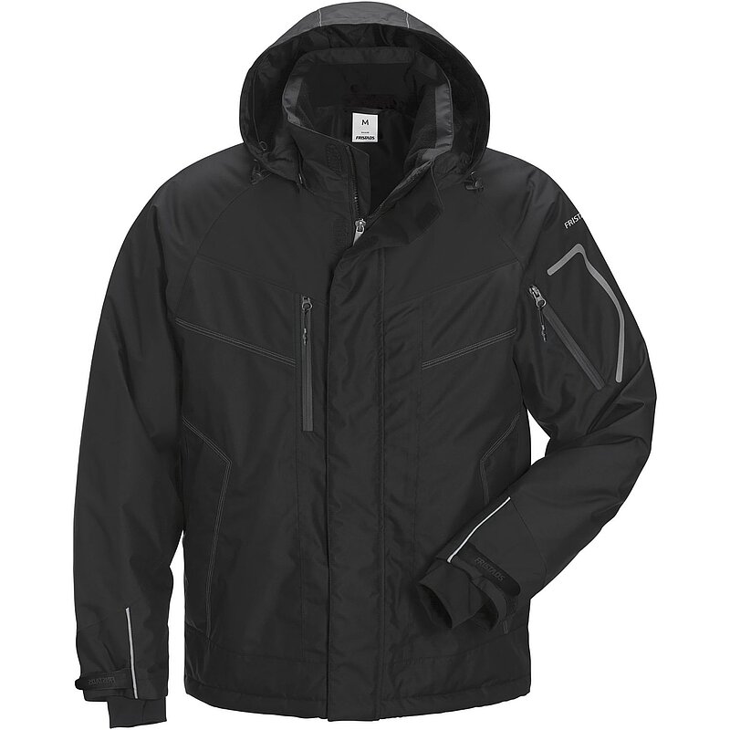 Airtech®, wind- und wasserdicht, atmungsaktiv. Getapte Nähte. Verdeckter Reißverschluss bis zum Kragen, Fleece am Kragen, Schlaufe für Kopfhörer. Abnehmbare, verstellbare Kapuze, Napoleon-Tasche unter der Blende. Brusttasche (rechts) mit Reißverschluss, linke Seite bietet Platz für Logo, Ärmeltasche (links) mit Reißverschluss. Verstellbare Armabschlüsse, elastische Ärmelinnenbündchen. Ergonomisch geformte Ellbogen. 2 Innentaschen mit Knopfverschluss. Mesh-Material im Armloch und am Armabschluss. 2 Seitentaschen mit Reißverschluss. Reflektierende Details an den Ärmeln, Seiten und am Rücken. Verlängerte Rückenpartie mit verstellbarer Kordel an Unterkante. Steppfutter. Reißverschluss im Futter ermöglicht Stickereien und Wärmetransfers. Wassersäule 10.000 mm. Geprüft und zugelassen gemäß EN 343 Klasse 3/1 und EN 342. Airtech® Material geprüft gemäß EN 343 Klasse 3/3.