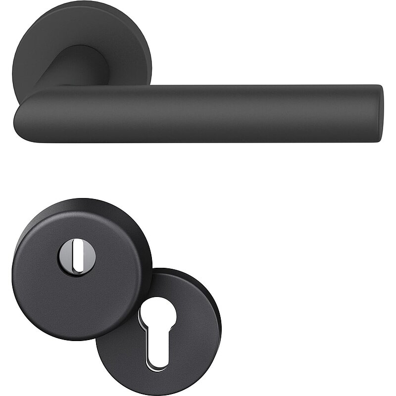 FSB Haustürdrückergarnitur 12 1076 mit Kernziehschutz, Aluminium schwarz matt