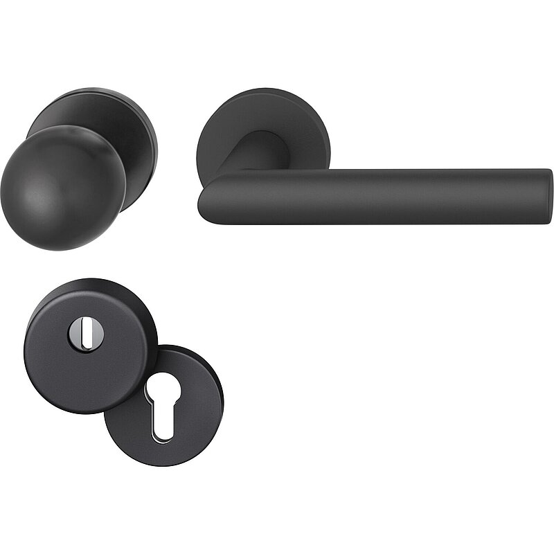 FSB Haustürwechselgarnitur 12 1076 mit Kernziehschutz, Aluminium schwarz matt