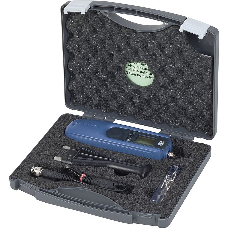 Lieferung inkl. Einschlagelektrode M 20, je 10 Ersatzspitzen 16/23 mm, Messkabel MK8, Koffer.