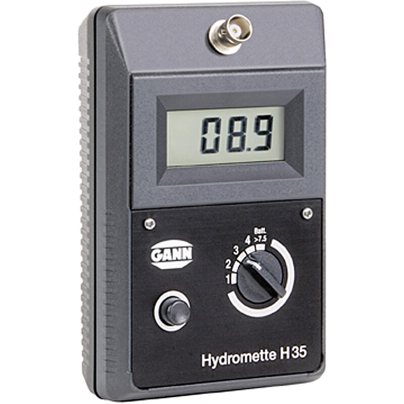 Elektronischer Holzfeuchtemesser mit LCD-Digitalanzeige (Ablesegenauigkeit 0,1%) für Präzissionsmessungen von Schnittholz (bis 180 mm Stärke), Spanplatten und Furniere durch Einzelmessungen vor und nach der Verarbeitung. Holzsorten-Umschaltung zur automatischen Messwertkorrektur von über 300 Holzarten. Vollautomatischer Geräteabgleich.