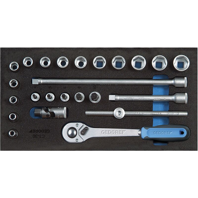 Für die Schubfachordnung in den Gedore Werkzeugwagen und Rollwerkbänken mit variabler Schubfachunterteilung. Einfache optische Vollständigkeitsprüfung durch 2-farbige Schaumstoffeinlagen. Besonders geeignet für Arbeiten in sensiblen Bereichen, in denen sichergestellt werden muß, dass kein Werkzeug zurückbleibt. Unterlage blau, Oberlage schwarz. Die Farbe signalisiert fehlendes Werkzeug. Das Werkzeug liegt verrutschsicher in seinem Nest und ist vor Beschädigungen geschützt. Griffmulden erleichtern das Herausnehmen des Werkzeuges. Resistent gegen Öle und Fette, leicht zu Reinigen mit Wasser, Seife und einer Hand-/Nagelbürste.