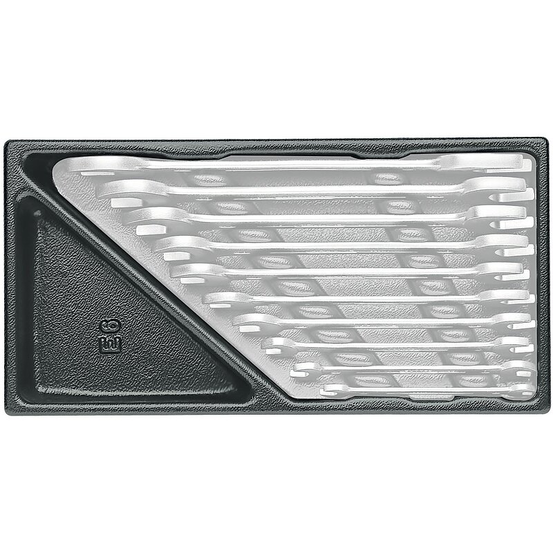 In 1/3 ES-Modul aus schlagfestem ABS-Kunststoff, Öl- und säurebeständig. Das Werkzeug liegt verrutschsicher in seinem Nest und ist vor Beschädigungen geschützt. Griffmulden erleichtern das Herausnehmen des Werkzeuges.