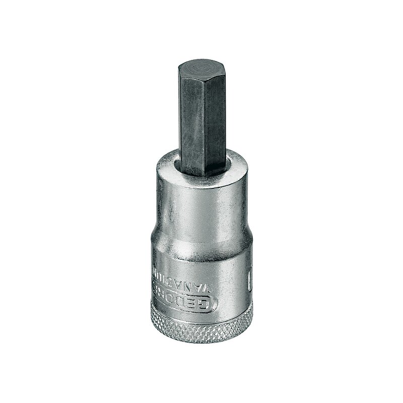 Mit Innenvierkantantrieb C 12,5 DIN 3120 - ISO 1174. Mit Kugelfangrille, griffig gerändelt. Eingepresster Stift aus Gedore-Vanadium Sonderstahl.