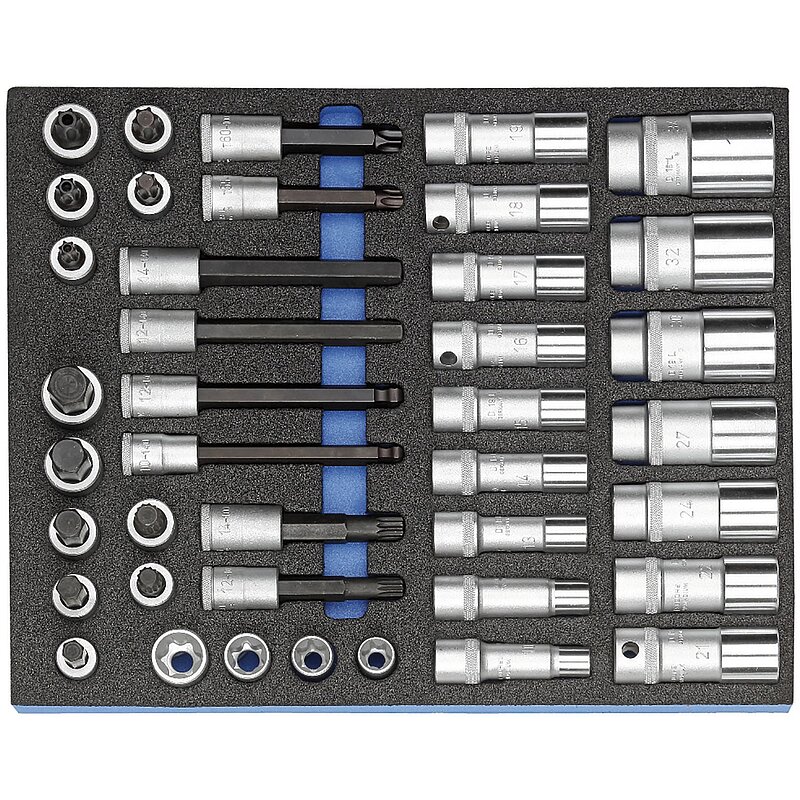 Inhalt: je 1 x Steckschlüsseleinsatz 1/2" 12-kant UD-Profil lang SW. 10, 12, 13, 14, 15, 16, 17, 18, 19, 21, 22, 24, 27, 30, 32, 34 mm,
